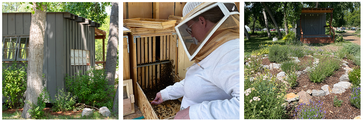 "Four of six of our hives survived the winter and are starting to carry in pollen," says resident beekeeper Lara Lovell. Our losses were less this year, which means we have not had to buy new bees and are working from our own proven genetics.